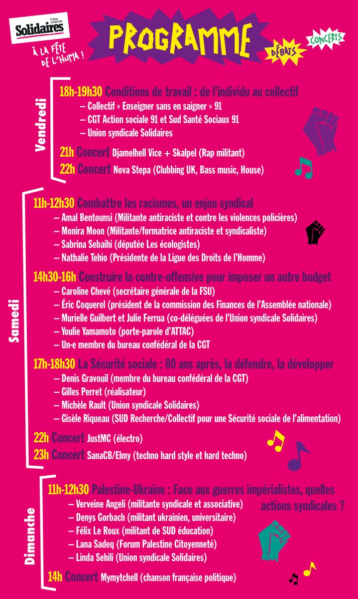 Pour la 4ème année consécutive, L'Union syndicale Solidaires aura un stand à la fête de l'Huma.