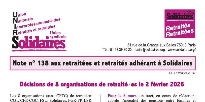 - Décisions de 8 organisations de retraité·es le 2 février 2026