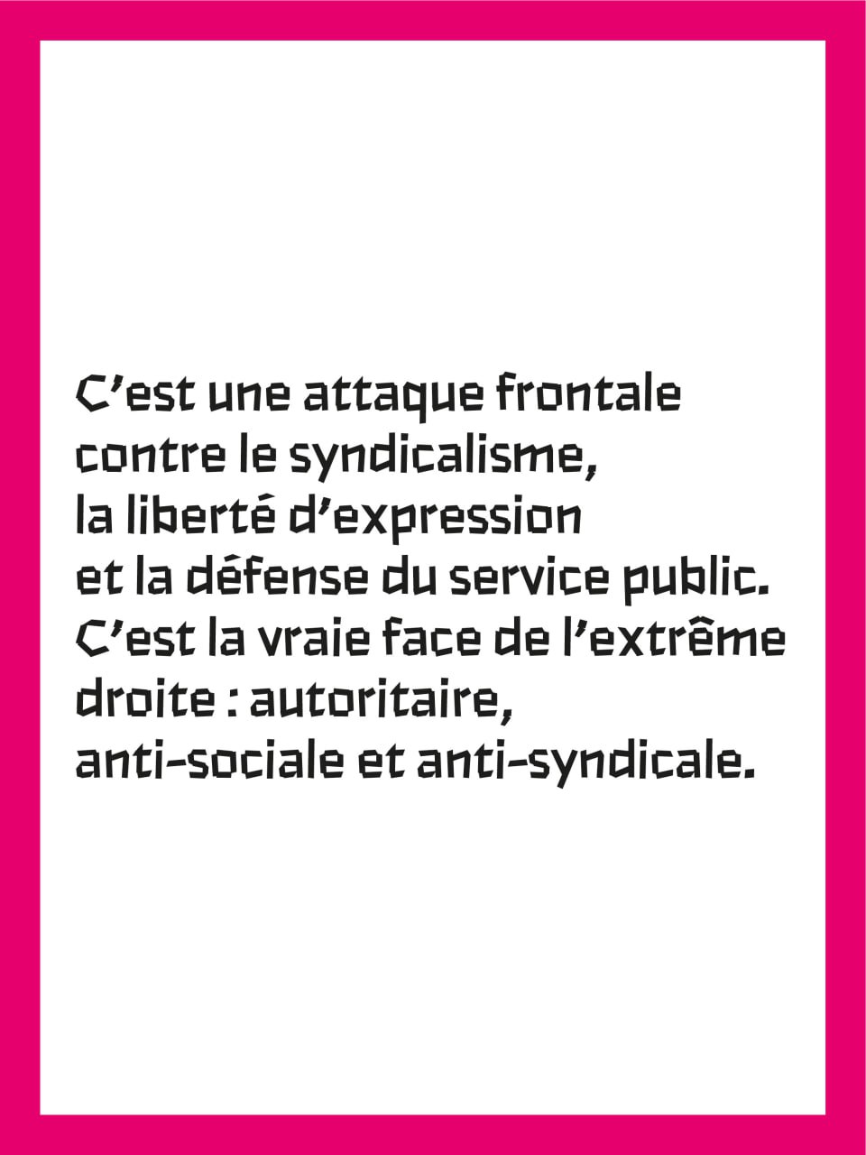 C’est la vraie face de l’extrême droite : autoritaire, anti-sociale et anti-syndicale.