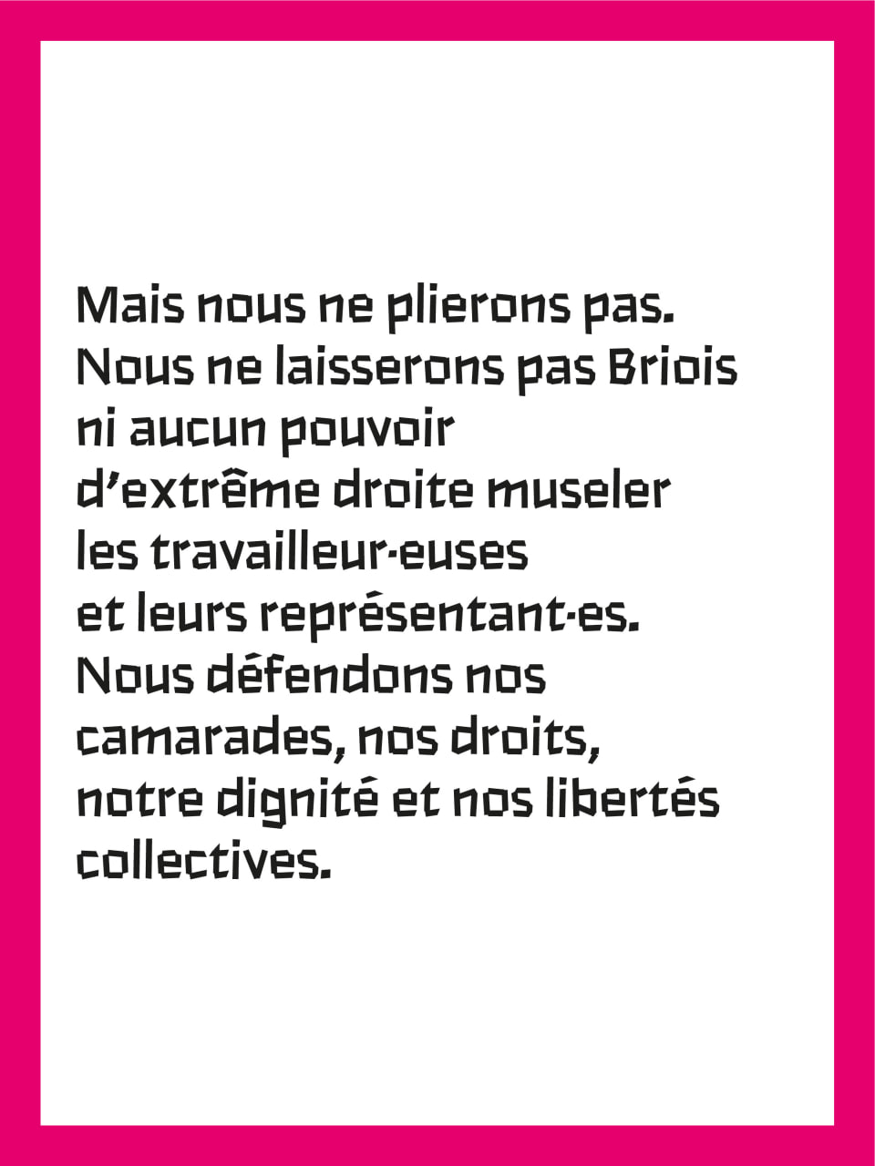 Nous ne laisserons pas Briois ni aucun pouvoir d’extrême droite museler les travailleur·euses et leurs représentant·es.