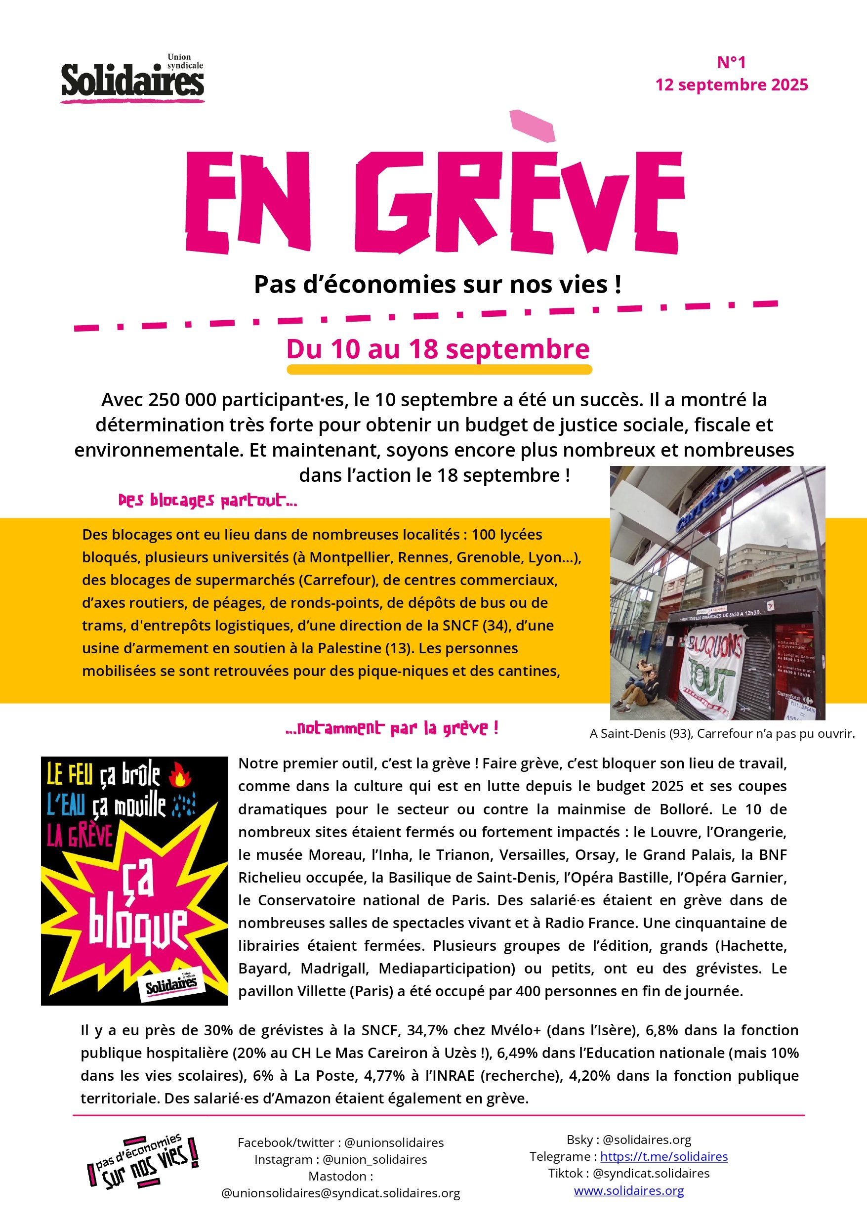 Avec 250 000 participant∙es, le 10 septembre a été un succès. Il a montré la détermination très forte pour obtenir un budget de justice sociale, fiscale et environnementale. Et maintenant, soyons encore plus nombreux et nombreuses dans l’action le 18 septembre !