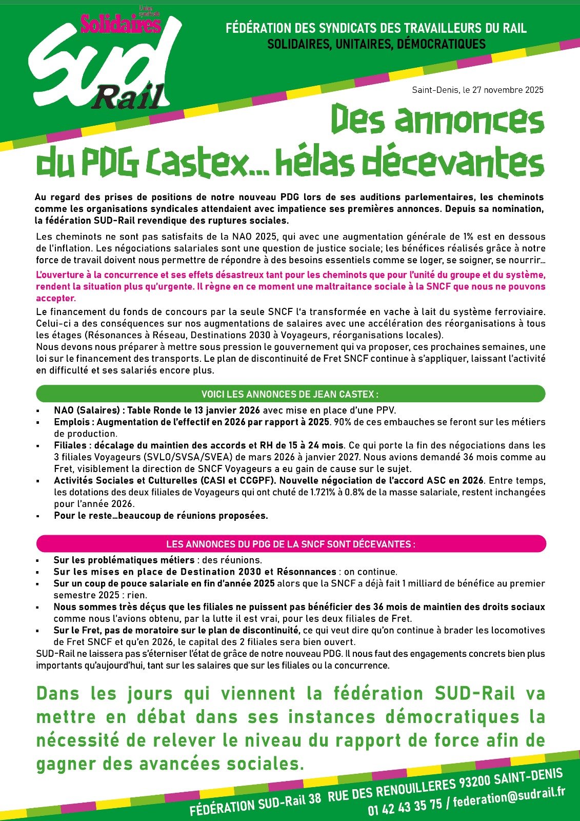 Les premières annonces du PDG Castex ce jeud matin aux fédérations cheminotes sont décevantes !