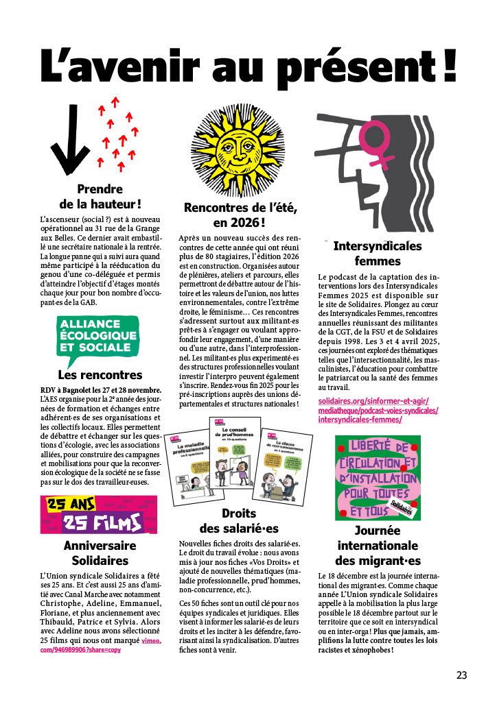 Nouvelles fiches droits des salarié·es. Le droit du travail évolue : nous avons mis à jour nos fiches «Vos Droits» et ajouté de nouvelles thématiques (maladie professionnelle, prud’hommes, non-concurrence, etc.). Ces 50 fiches sont un outil clé pour nos équipes syndicales et juridiques. Elles visent à informer les salarié·es de leurs droits et les inciter à les défendre, favorisant ainsi la syndicalisation. D’autres fiches sont à venir.