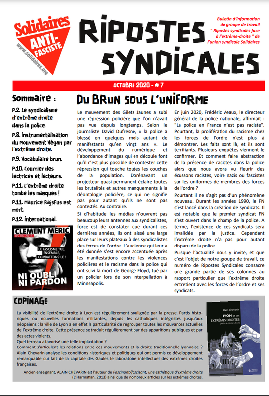 Bulletin d’information du groupe de travail Ripostes syndicales face à l’extrême-droite de l’union syndicale Solidaires.